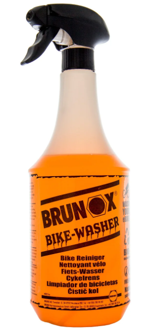 Przy ciężkich zabrudzeniach, najpierw umyj rower wodą pod lekkim ciśnieniem, a następnie spryskaj środkiem Brunox Bike-Washer i pozostaw na dłużej.